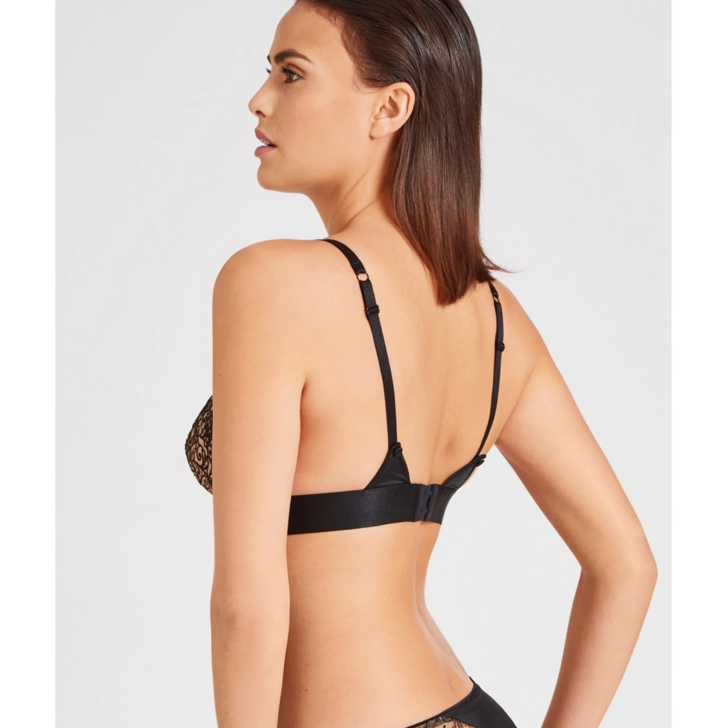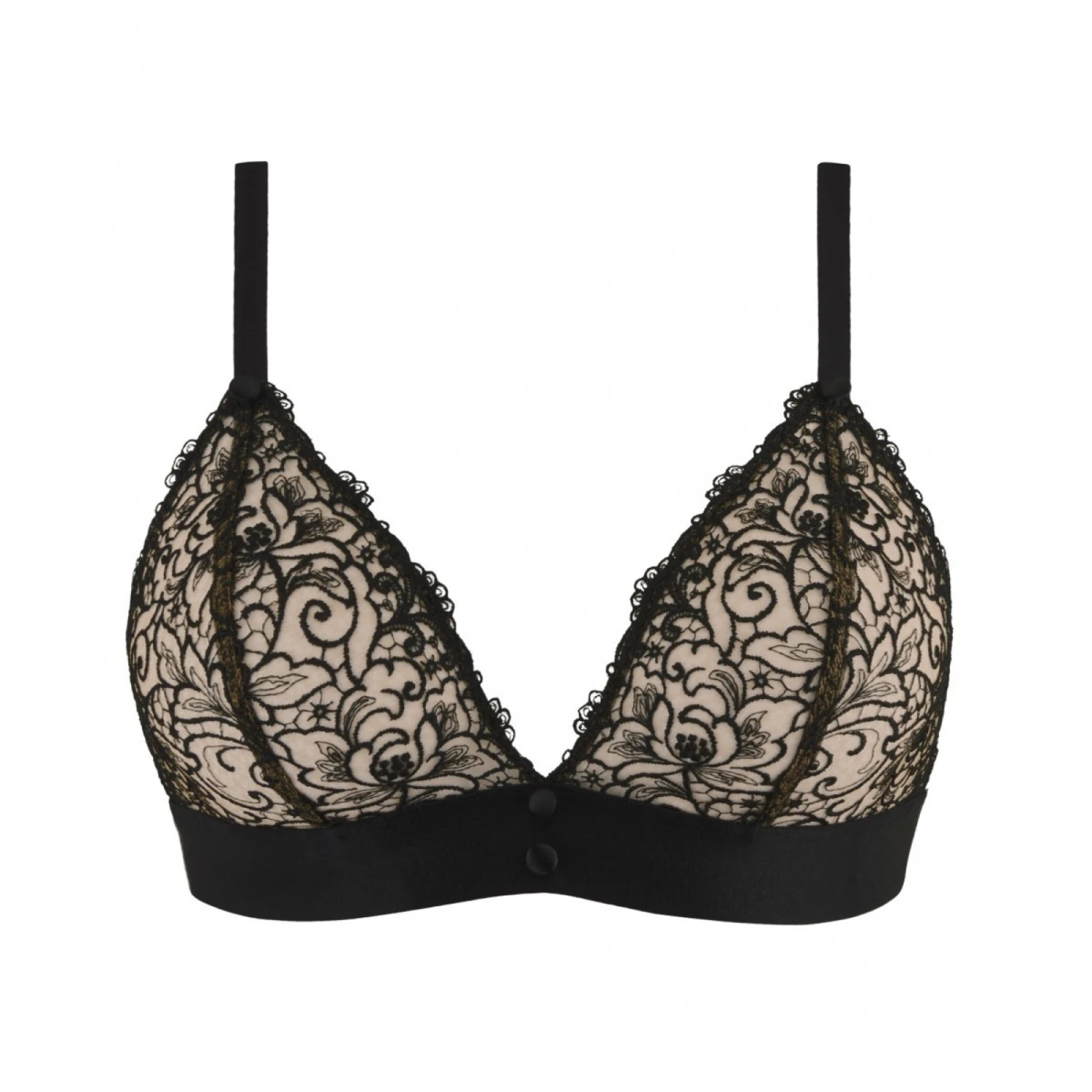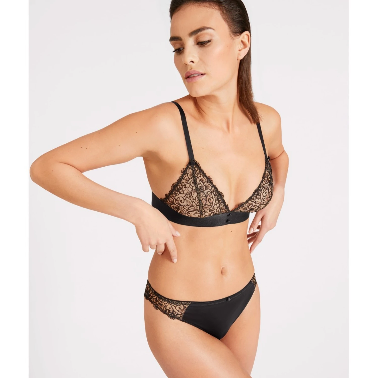 On aime ce soutien gorge triangle sans armature pour son effet broderie guipure transparente.