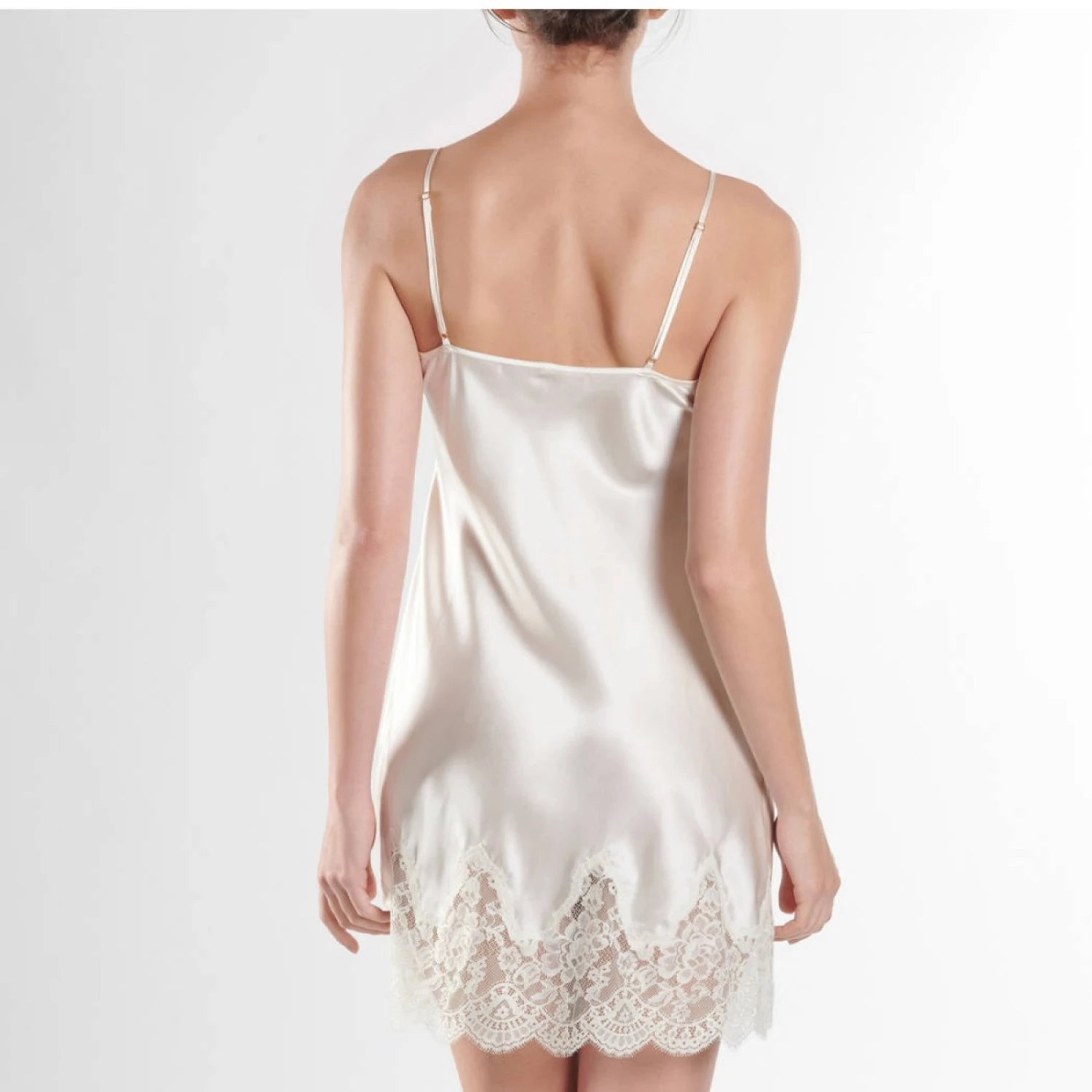 Ici, la nuisette en soie avec une incrustation de dentelle délicate. Fluide et légère, cette nuisette incroyablement sexy glisse délicatement sur la peau et garantit une grande liberté de mouvement.