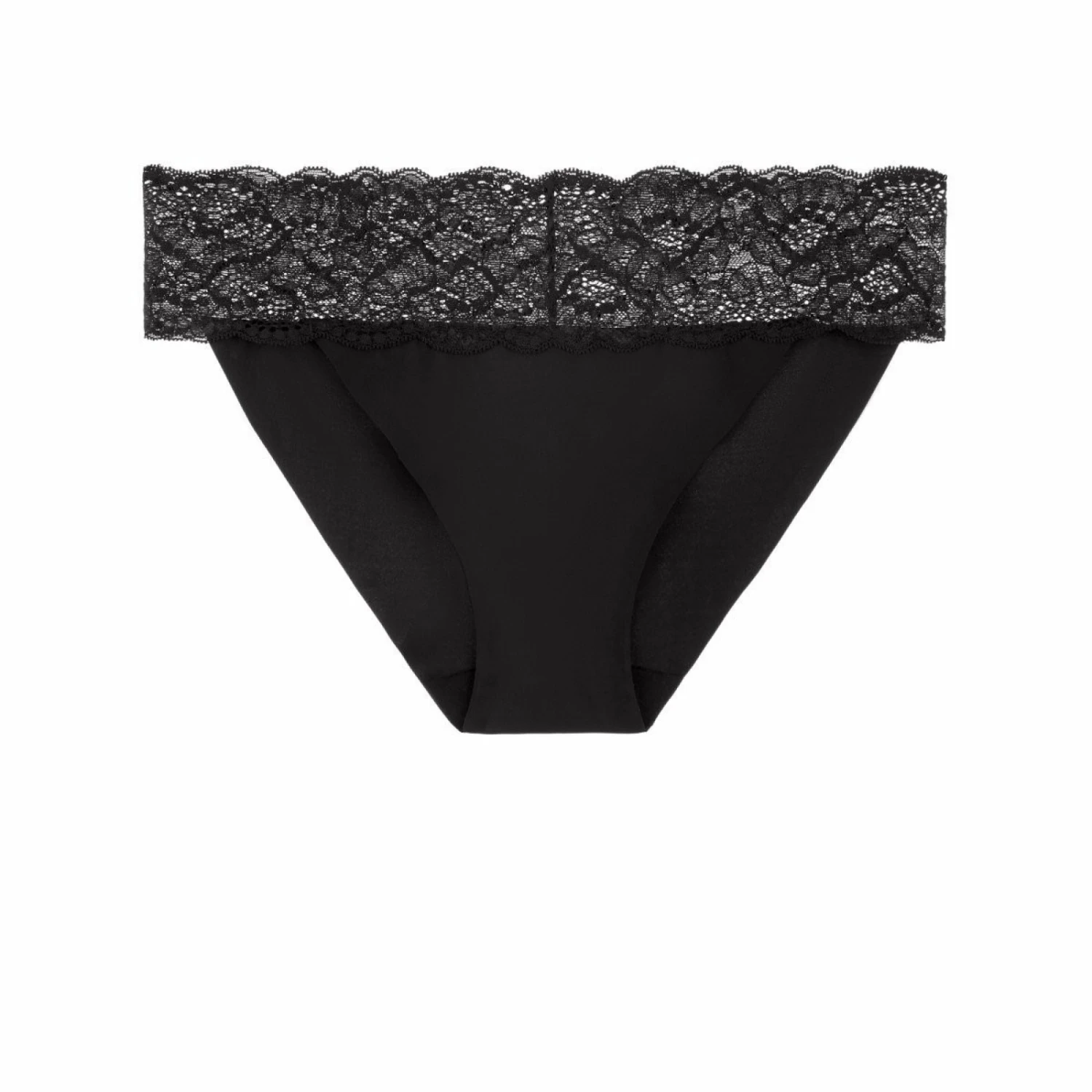 Slip Brésilien AUBADE Sweetessence en maille douce et en somptueuse dentelle florale. Résolument raffinée, cette ligne durable composée de fibres recyclées apporte un vent de fraicheur dans notre lingerie quotidienne. La maille aux reflets satinés se dépose délicatement sur les courbes pour un effet seconde peau unique. Sa forme enveloppe tendrement les hanches tandis que les découpes au laser promettent une invisibilité parfaite sous les vêtements. La magnifique dentelle mêlant fils mats et brillants agrémente la taille avec élégance et offre un jeu de transparence très sexy. Fond doublé 100% coton.