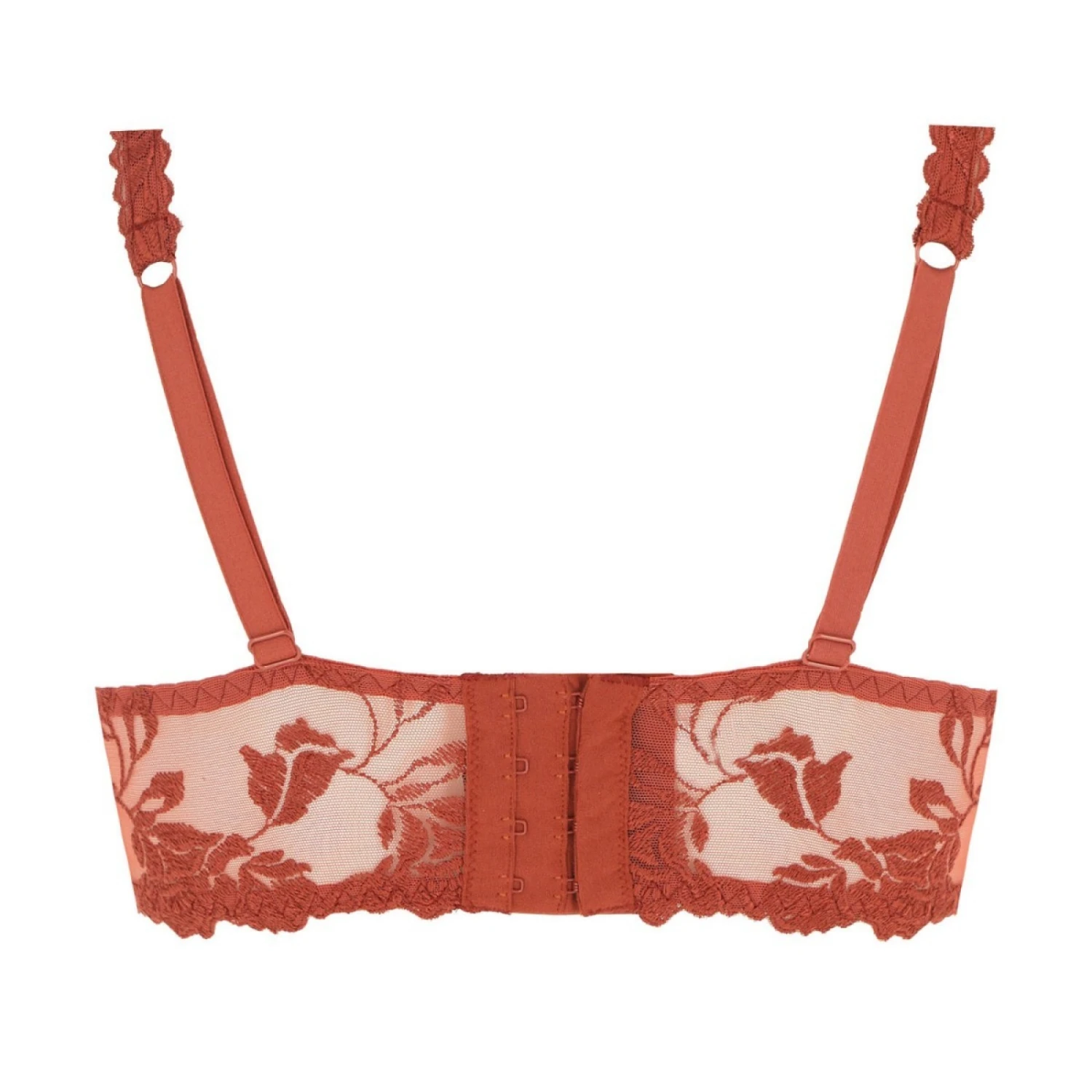 Chic et sophistiqué, le soutien-gorge Corbeille Armatures présente un bonnet rehaussent légèrement la poitrine sans donné de volume supplémentaire. Disponible jusqu’au bonnet G et s’adaptant aux grandes tailles, il est entièrement extensible et son large tour de dos assure une maintien optimal tout au long de la journée. Ces bretelles sont réglables et ornées d’une très belle broderie qui prolonge la sensation de jardin florale. Cette fois décliné en Terracotta un coloris à la mode et chaleureux.