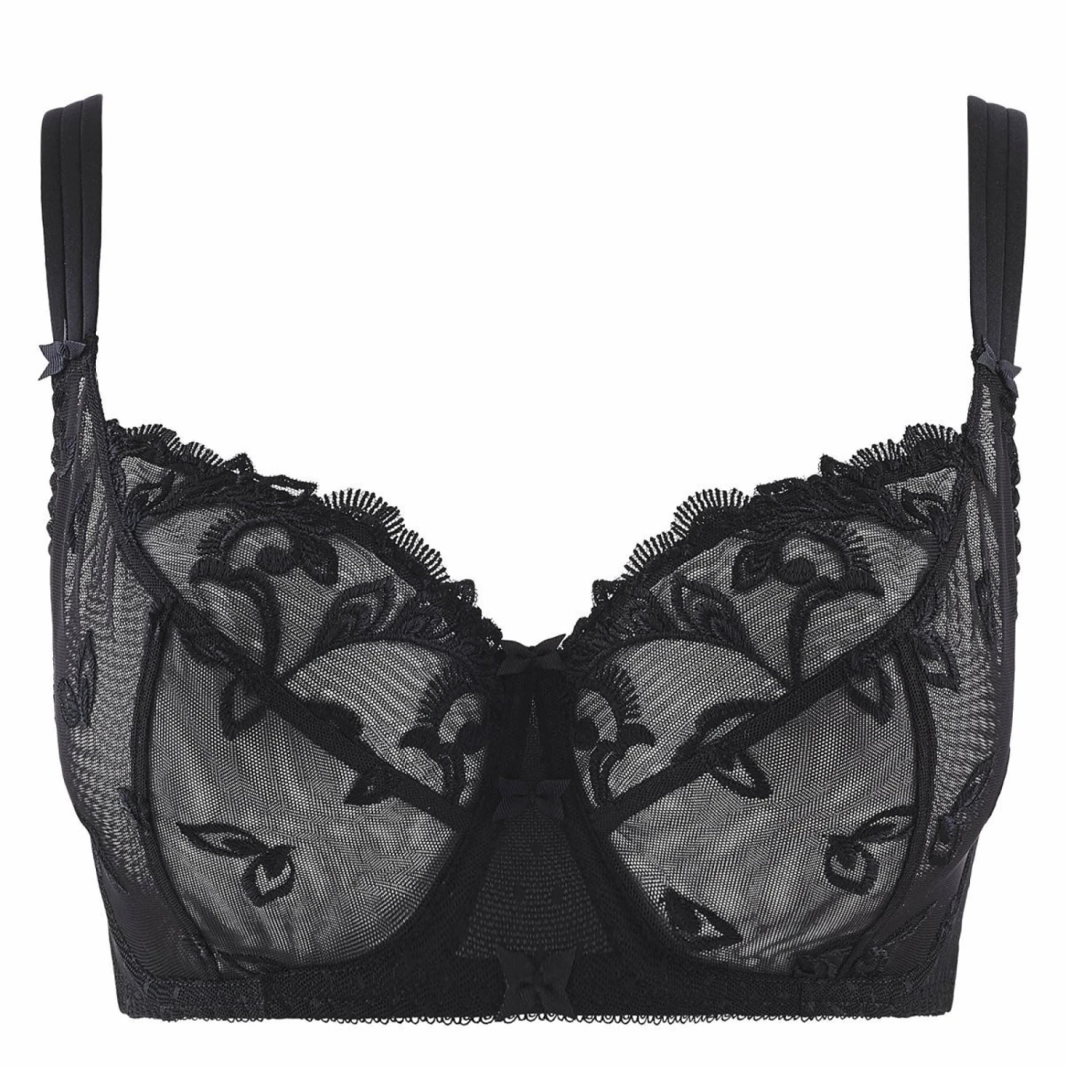 Le coloris noir mystérieux et raffiné devient un coloris permanent. La forme emboitante du soutien-gorge est très confortable et va jusqu’au bonnet G.