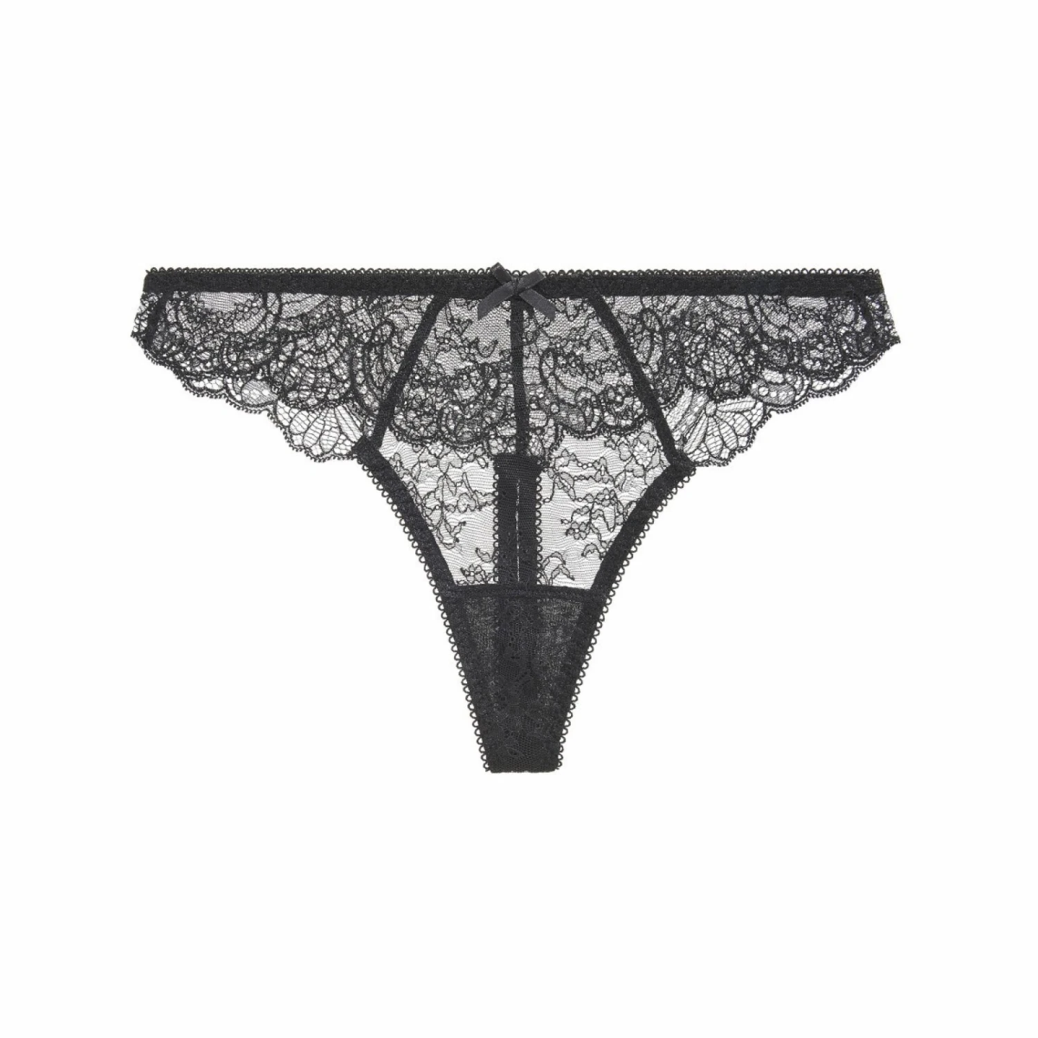 Aubade Tanga Danse des Sens Noir Un tanga tout en dentelle délicate qui dessine la ligne des hanches dans un style très raffiné. Le dos, tout en galon dentelle, dévoile les fesses délicatement.