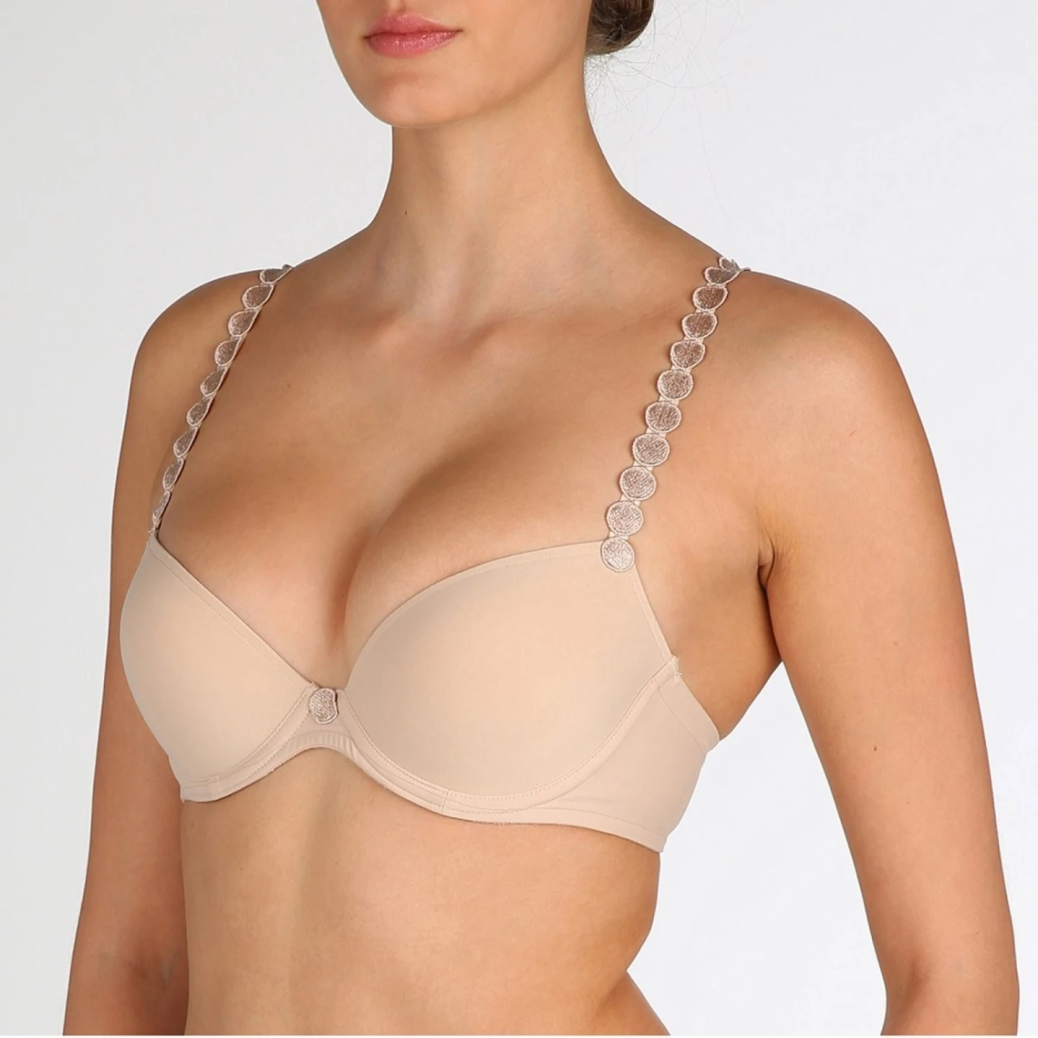 La collection Tom est la lingerie phare de chez Marie Jo l’Aventure. Elle répond à toutes vos envies ; elle est invisible sous les vêtements, elle garantit maintien et confort grâce à ses matières ultra-douces et vous assure un look original et féminin grâce à ses bretelles ludiques. Le soutien-gorge push-up crée un décolleté encore plus pigeonnant car il intègre une surépaisseur progressive dans le bonnet. Une pièce essentielle et sexy dans votre tiroir à lingerie ! Le bonnet reste opaque et les bretelles sont délicatement satinée. Cette collection intemporelle qui allie confort et tendance est un incontournable de la marque. Bretelles extensibles et réglables.