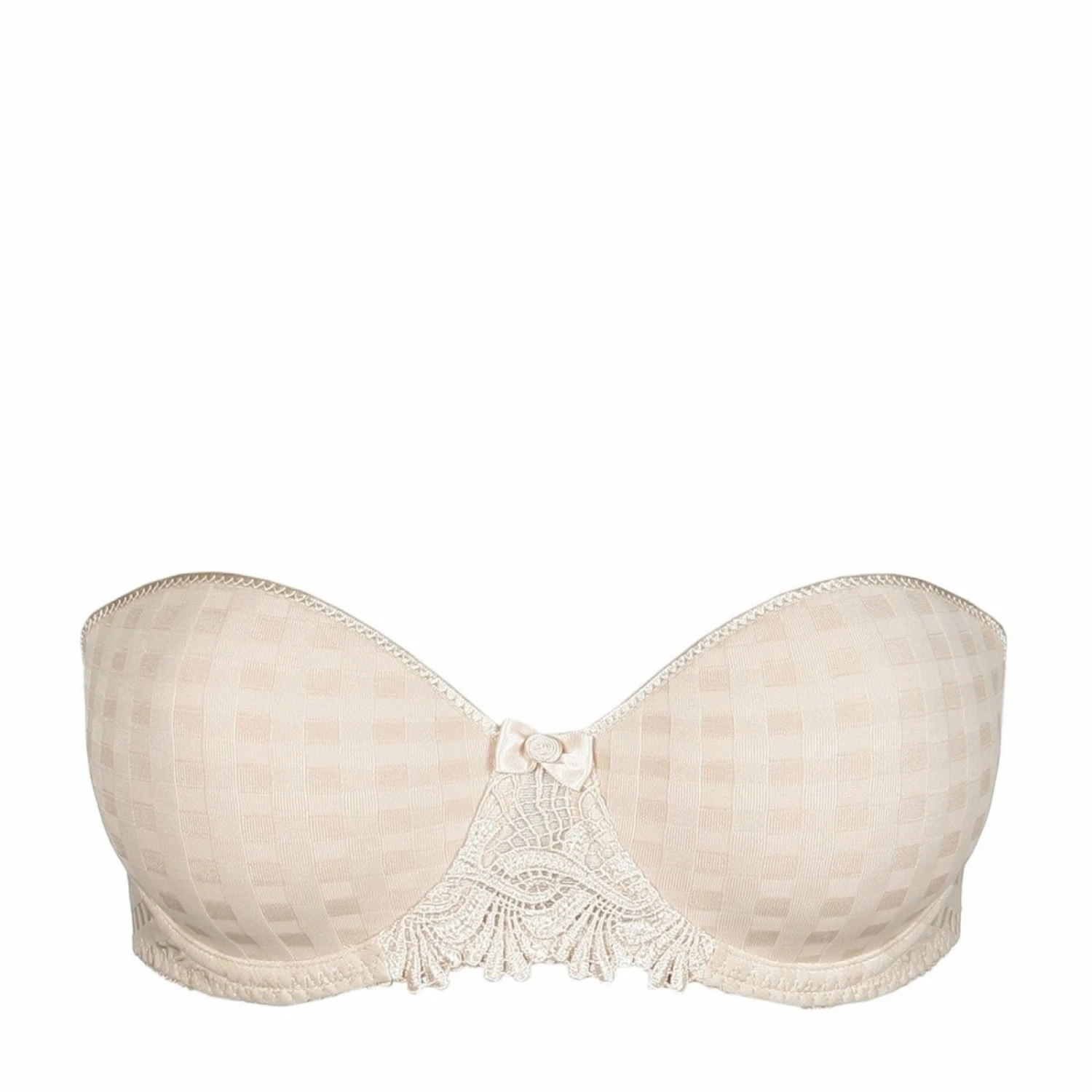 Soutien-Gorge bandeau avec coques en mousse intégrées pour une poitrine centrée. Avec sa maille extensible texturée, c’est un indispensable pour cet été.
