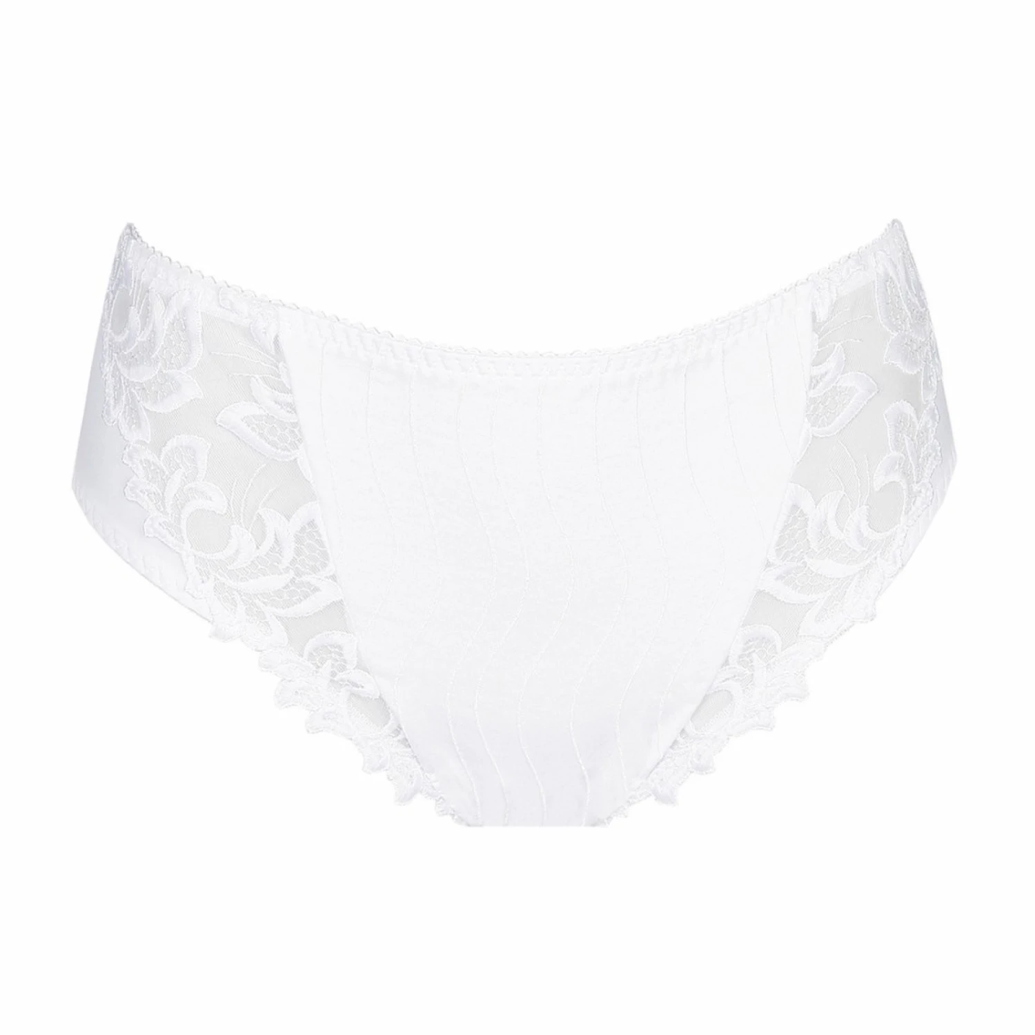 La Culotte Haute Deauville Blanc PrimaDonna a un style élégant intemporel et une coupe inégalable. La culotte opaque sophistiquée est ornée de broderie élégante à l’échancrure. Lumineux et pétillant en Blanc frais.