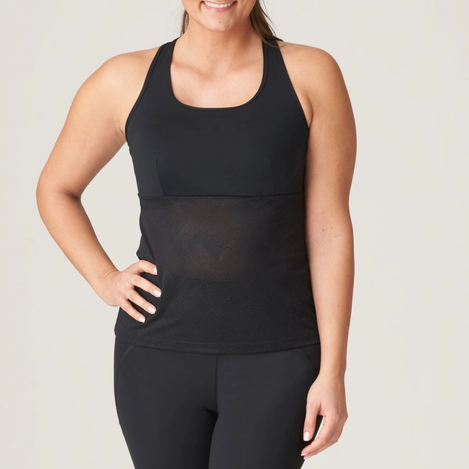 Débardeur au look graphique et sensuel et au dos nageur sportif.
