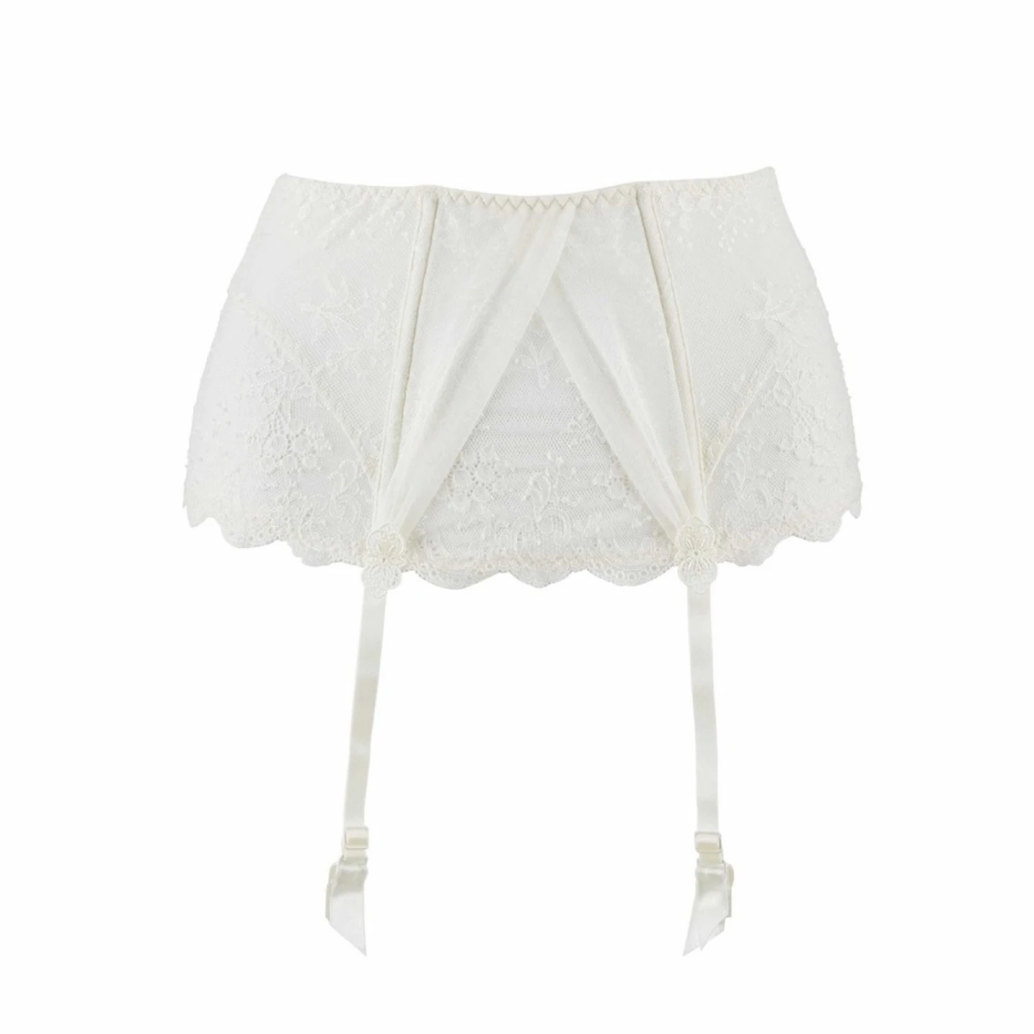 Une ligne dentelle Leavers aux détails drapés et motifs guipure élégants.