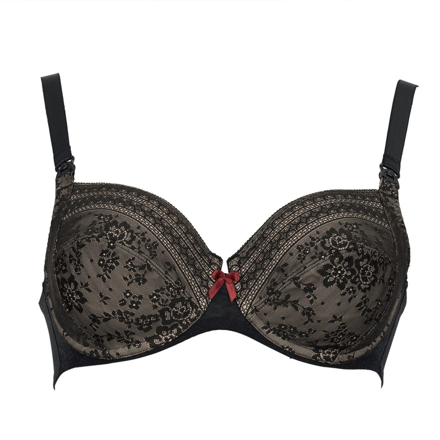 Soutien-gorge allaitement avec armatures ANITA Maternity modèle Fleur coloris Noir. Vous pouvez l’associer avec le slip pour la grossesse et allaitement modèle Fleur dans le même coloris.