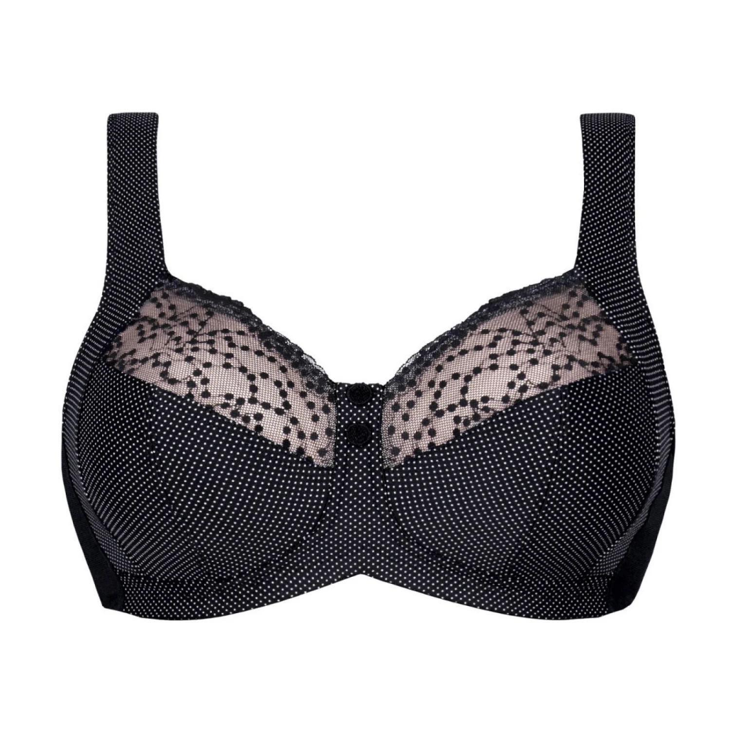 Bonnets : Décolleté semi-transparent – Renfort de poitrine latéral qui se poursuit dans les bretelles confort