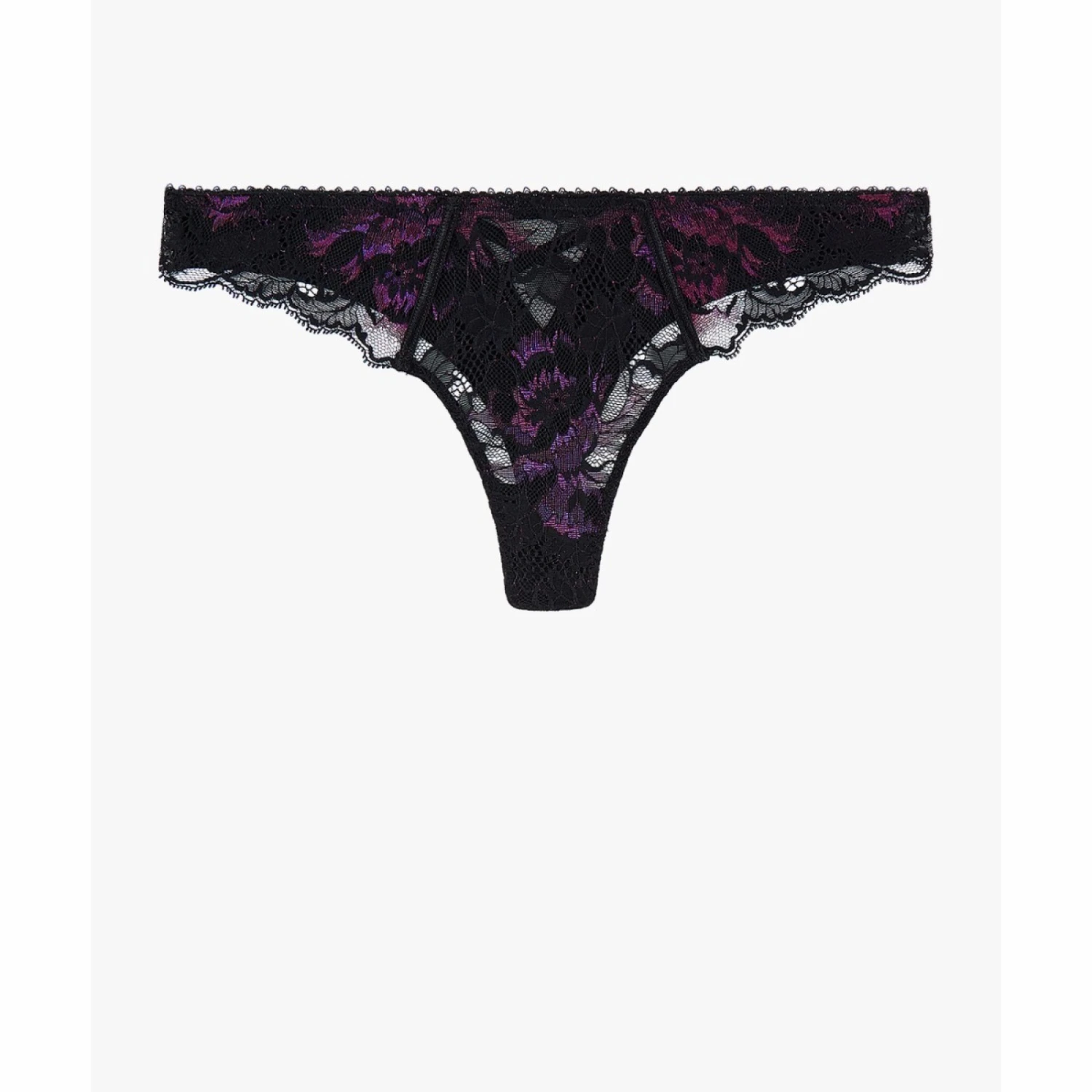 Ce délicat tanga apporte confort et sensualité en mariant à la douceur de la maille la séduction de la dentelle Leavers de Calais. Un élégant picot rehausse les extrémités du modèle et laisse place aux broderies séduisantes sur les fesses. A associer avec le porte-jarretelles Aube amoureuse.
